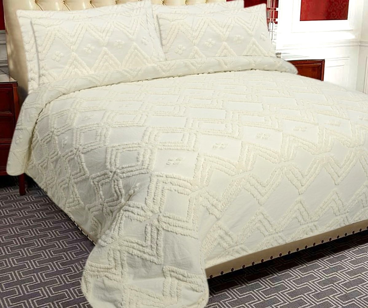 Experience royal comfort with this beautifully Geometrical design cotton tufted duvet cover set. The delicate tufted accents enhance the luxurious feel, making your bedroom a haven of relaxation. Comes with a duvet cover & pillowcases. Euro shams, and cushion covers can also be added if required.