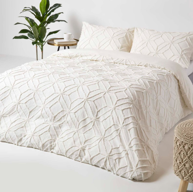 Upgrade your bedroom with the perfect blend of contemporary style and cozy comfort. This cotton geometric tufted duvet cover set features intricate tufted patterns that create a bold yet sophisticated look. Made from soft, breathable cotton, it offers a luxurious feel while adding texture and depth to your space.